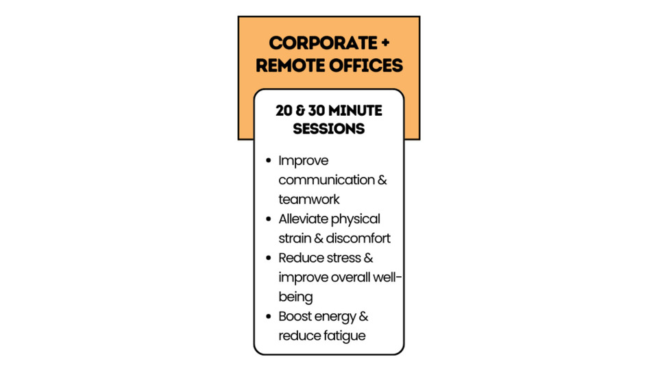 Clear and stimulate the brain and body for better productivity and focus via tailored 20 or 30-minutes office or remote group employee session.